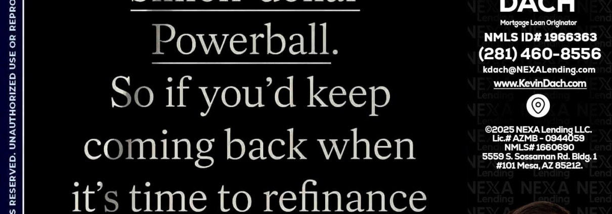 NO LUCK WITH - Kevin Dach -Loan OfficerHi, my name is Kevin Dach. I’m a Loan Officer with NEXA Lending LLC., offering personalized mortgage solutions, fast customized quotes, great rates and service with integrity.