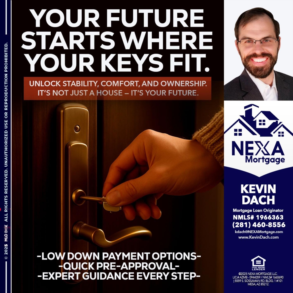 Hi, my name is Kevin Dach. I’m a Loan Officer with NEXA Mortgage LLC., offering personalized mortgage solutions, fast customized quotes, great rates and service with integrity.